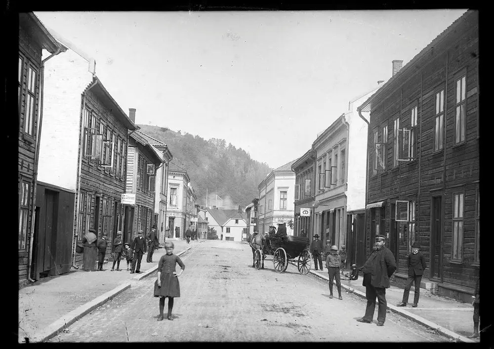 Langgaten i Holmestrand. Ca. 1895-1900. Foto: Louise Helene Wold.