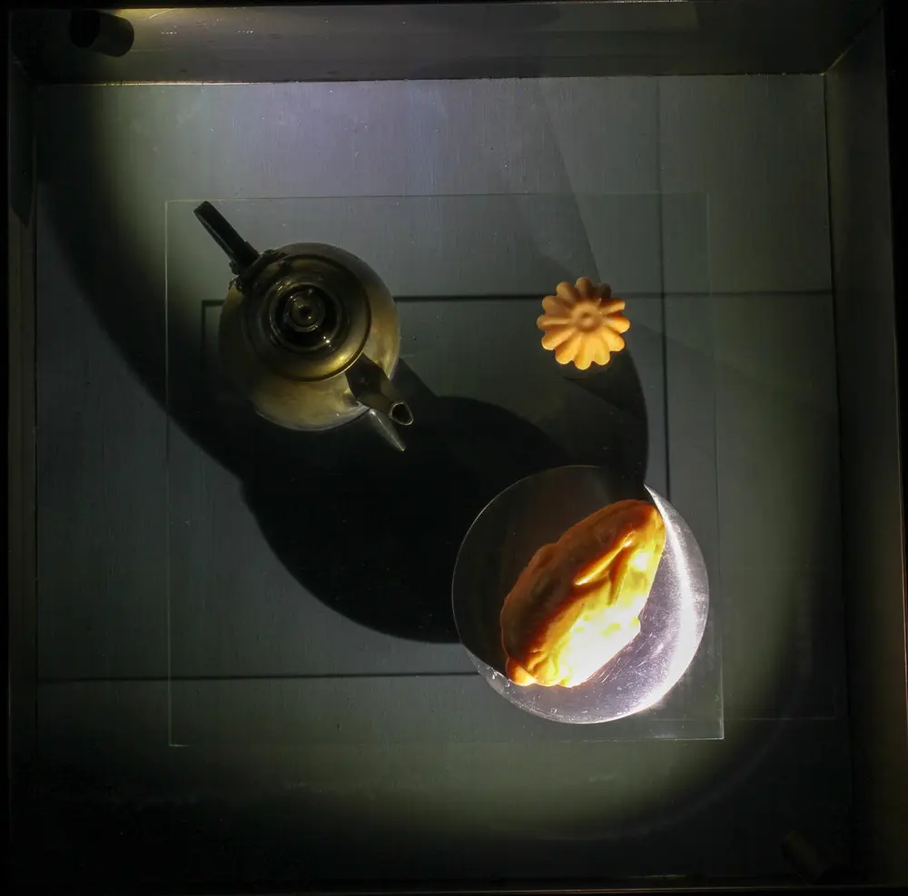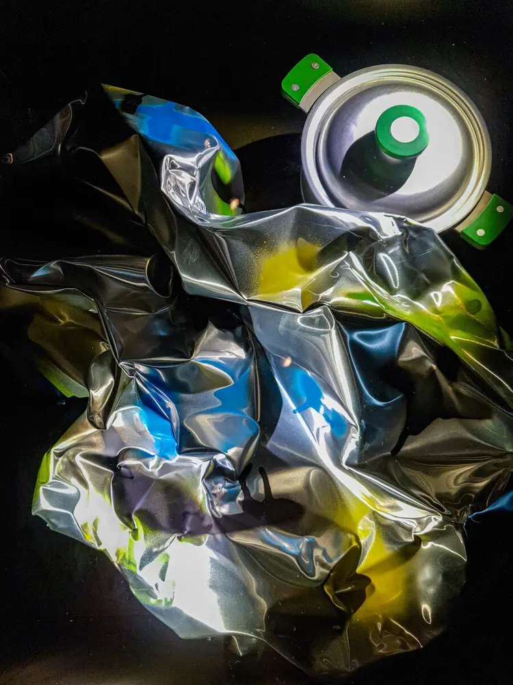The inside of aluminium pans, which used to be hailed for being practical and hygienic, now had to be covered up for failing in the very same departments: Teflon was to keep food from sticking and to keep aluminium – now considered a health hazard – from infecting food during cooking. The outside of aluminium pans, which “nudity” used to be flaunted as an expression of economy and progress, now had to be hidden from view by means of a decorative technology hitherto reserved for more ‘precious’ metals like steel and silver. The only quality left for aluminium to boast about was its heat conductivity.
