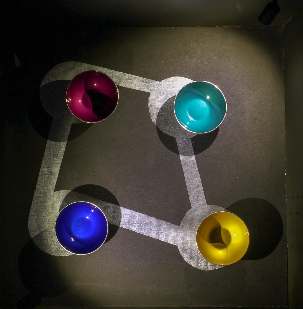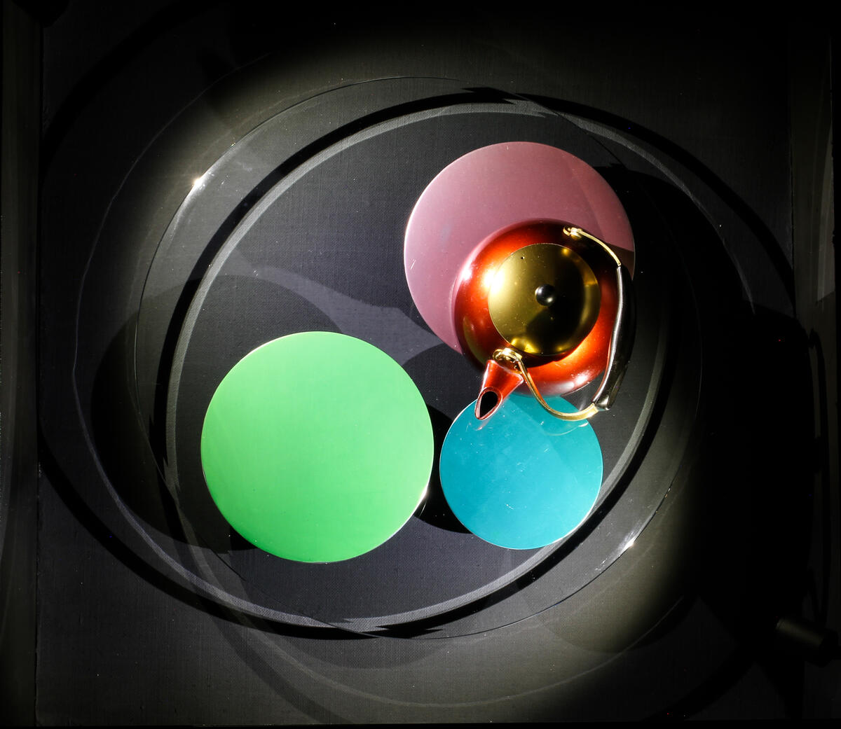 Basic tableware such as bowls, dishes, napkin rings, vases, etc. made from very colourful anodized aluminium became something of a fad in 1950s Norway. Anodizing, achieved by immersing the aluminum into a coloured acid electrolyte bath and passing an electric current through the medium, turned out to be an efficient way of making affordable, mass-produced goods attractive.
