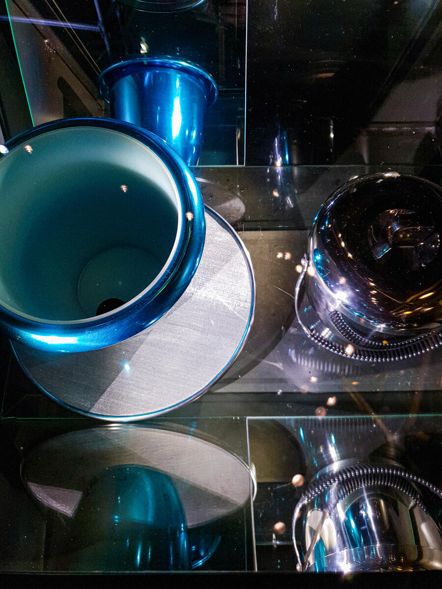 This coffee pot, which remained in production from c. 1935 to the late 1960s, illustrates how aluminium in this period became the preferred material in the kitchenware industry.