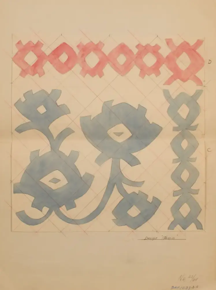 Et av de ca. 300 mønsterskissene til Inger Johanne Ramstad i Berger museums eie.