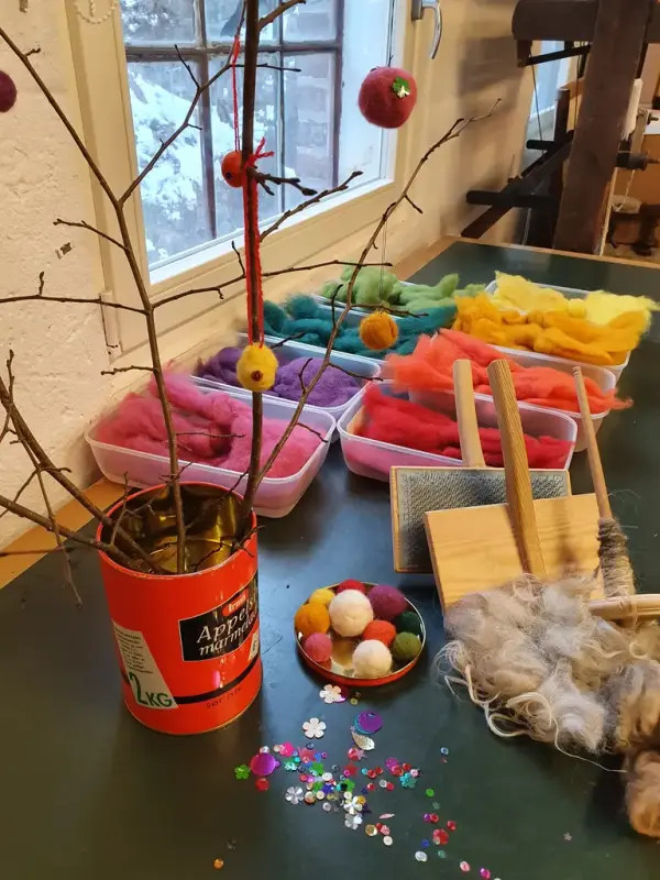 Bli med å lage fin påskepynt i det gamle veveriet på Berger. Vi skal lage fargeglade påskeegg, og finner frem ulikt materiale som barna kan teste ut. Her blir det mulig å tove sine egne egg i ull. Vi har også isoporegg som kan males og dekoreres med ulik pynt.
