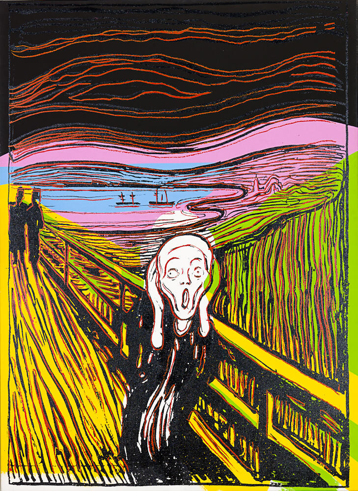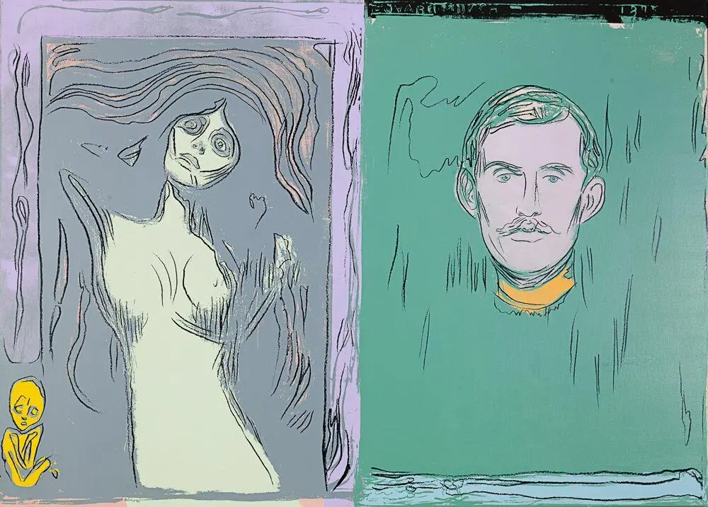 Popkunstneren Andy Warhol (1928 – 1987), utførte i 1983-84 en serie på 15 malerier med motiver som han hentet direkte fra fire av Edvard Munchs mest kjente grafiske trykk. Warhol hadde lenge holdt Munch som en av sine absolutte favorittkunstnere ved siden av Henri Matisse, og i 1973 hadde han også besøkt Oslo for å se hans arbeider i Nasjonalgalleriet og på Munch-Museet.