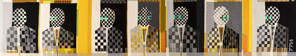 Synnøve Anker Aurdal - Byråkratene, 1992-1993 (utsnitt). Foto: Stortingets kunstsamling.