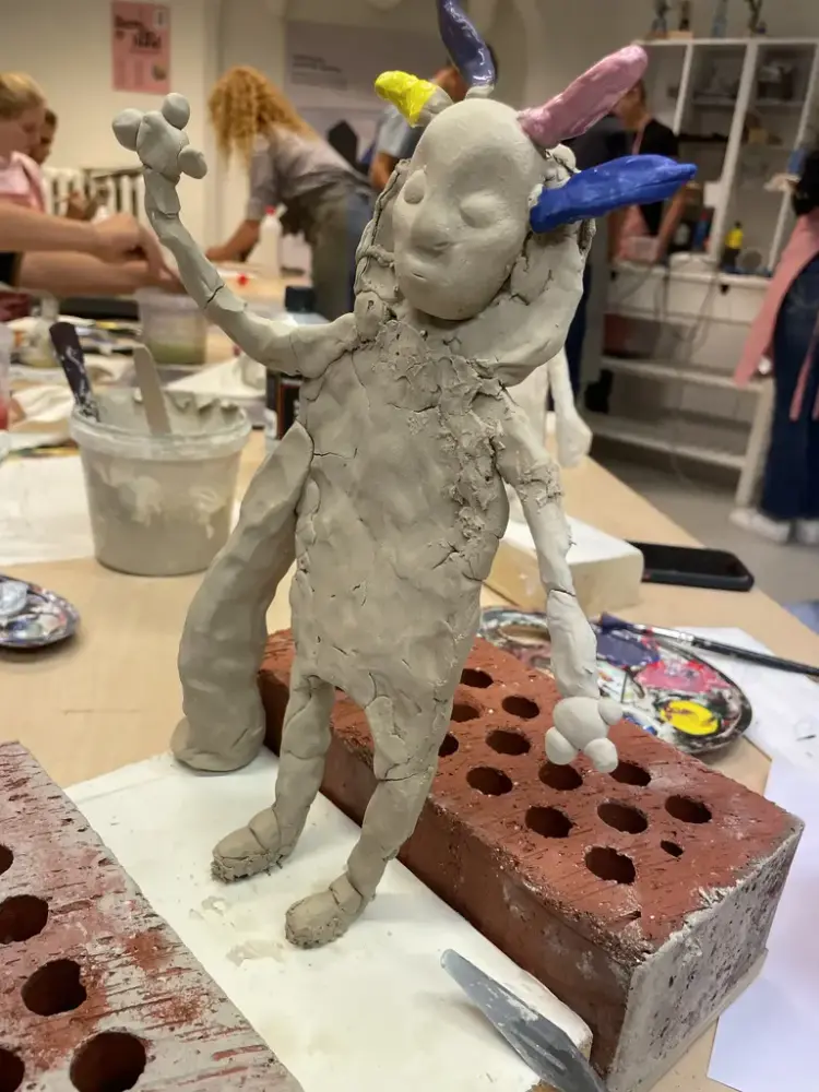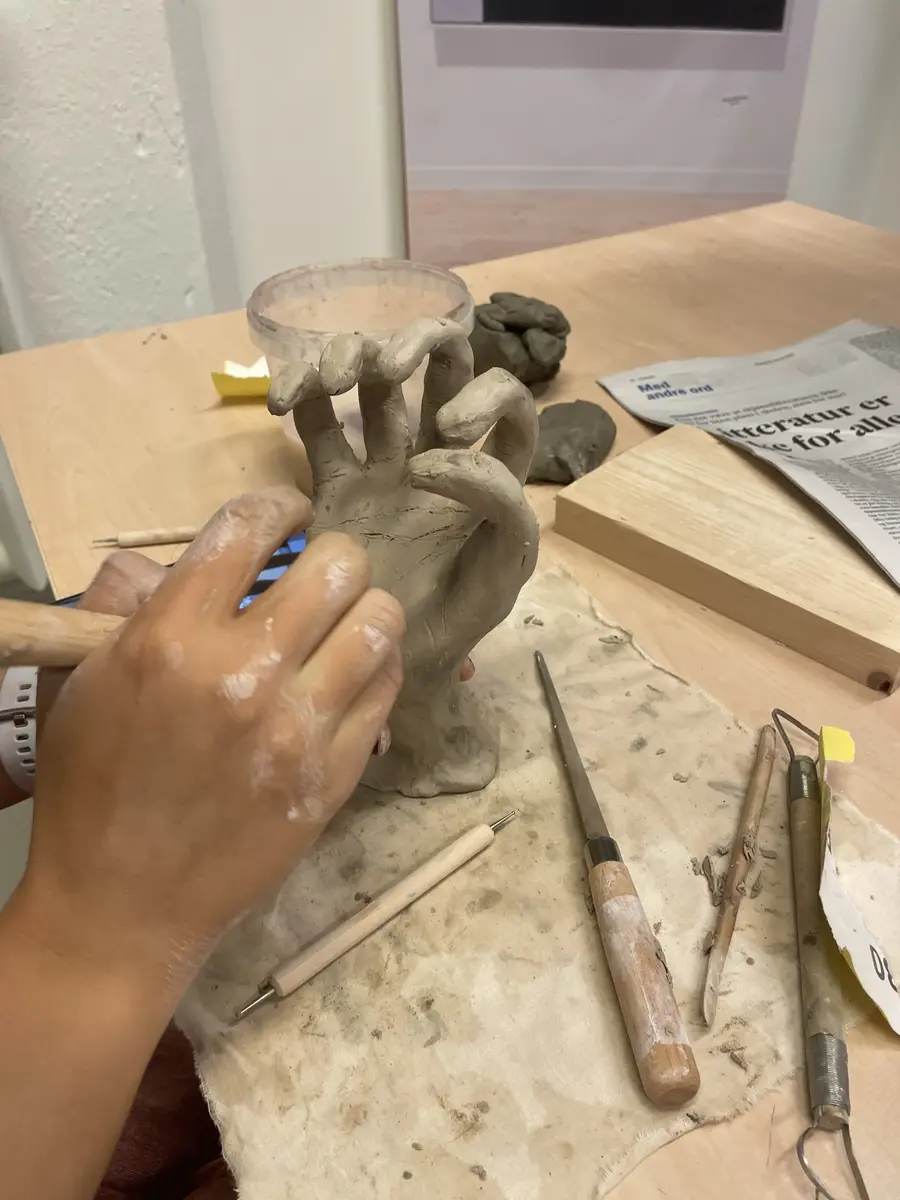 Gjennom fem besøk på Haugar, fra skolestart i august til nå i september, har elevene deltatt i hele prosessen: fra første idé og skisser, via skapende arbeid i møte med kunstneren Nilia Hersdal, til ferdig montering av utstillingen. Resultatet er en rekke skulpturer og visuelle uttrykk som kretser rundt spørsmål om tilhørighet, identitet og plass i samfunnet.