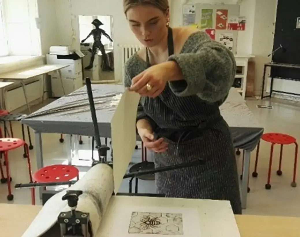 In the art workshops, we work with various techniques such as printmaking, drawing, painting, and sculpture, with a focus on the creative process.