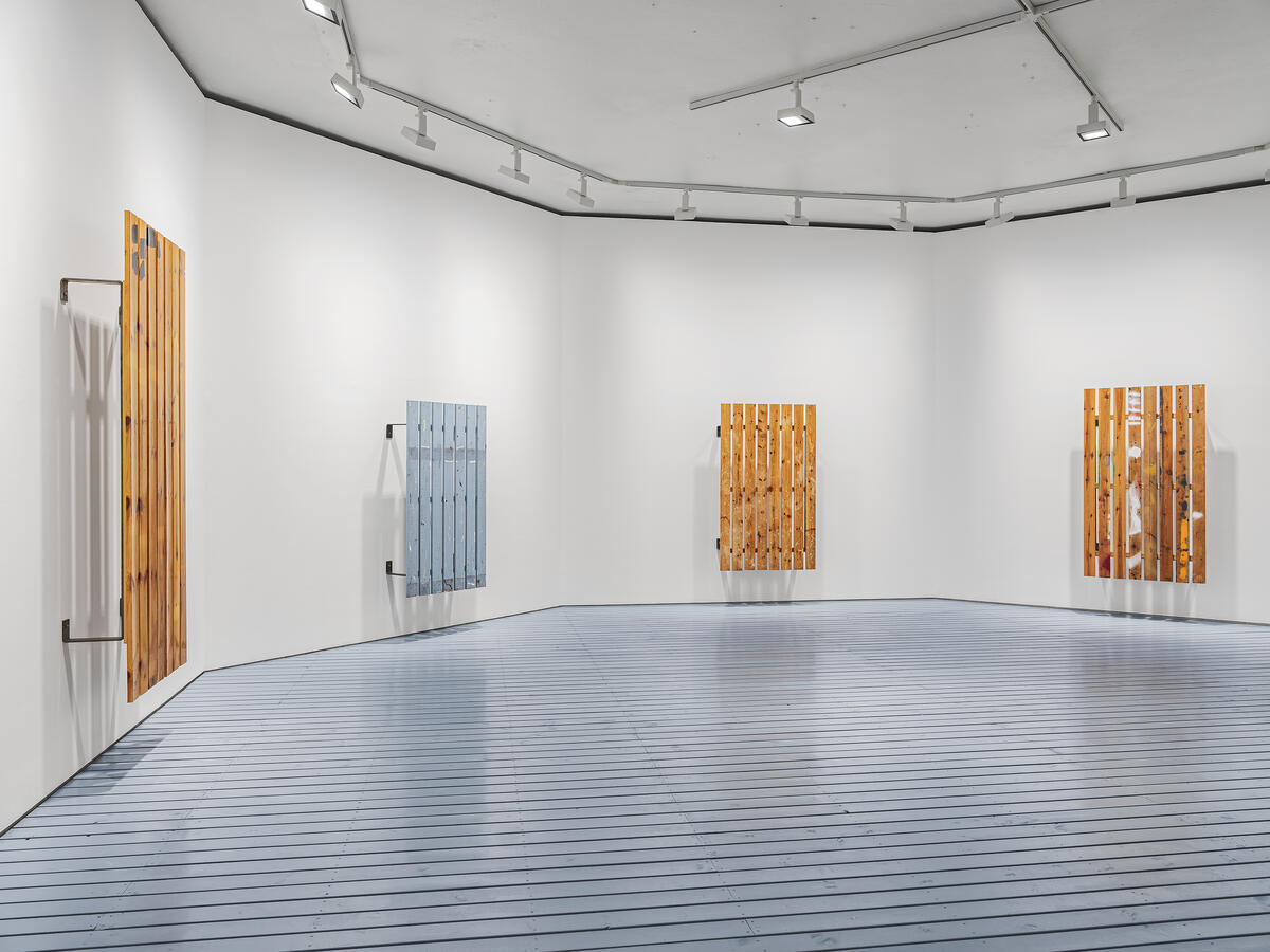 The planks themselves may be industrially made, but they are mounted manually and subjected to a variety of painterly techniques. The works navigate through a post-conceptual, contemporary version of the kind of theatricality that the American art critic Michael Fried pointed to as a defining quality of Minimal art in the 1960s.