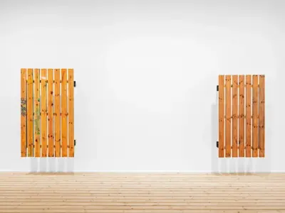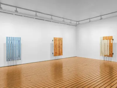 Fra utstilling av Fredrik Værslev, Platting.