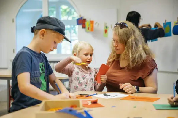 Verksted for barna på Haugar kunstmuseum i høstferien! Foto: Georg Aamodt.