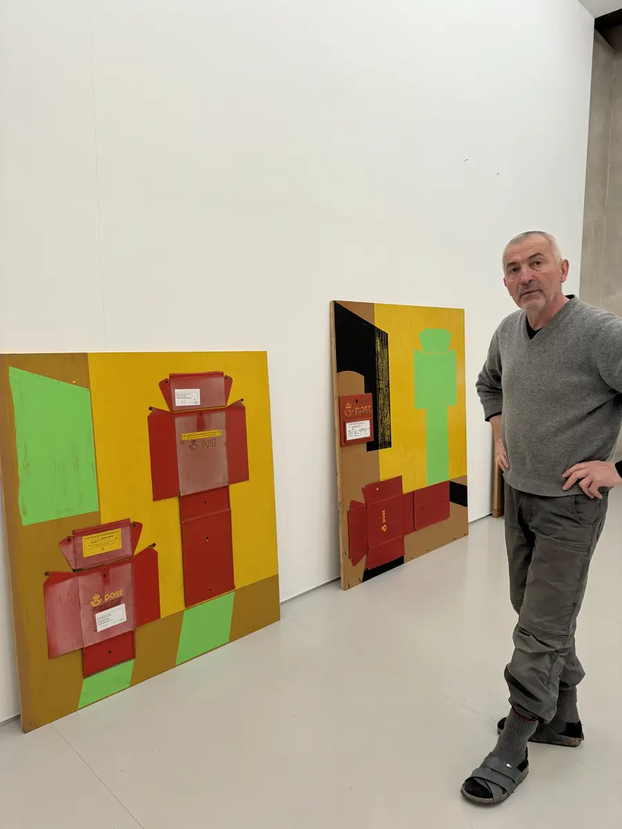 Sverre Wyller foran to av sine verk.