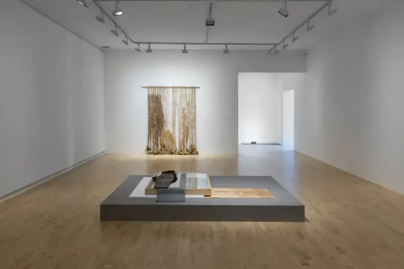 De tre kunstnerne i utstillingen møter kurator Steffen Håndlykken til en samtale om verkene som vises i Pyramide.