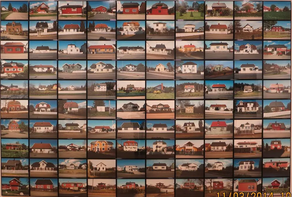 Stiftelsen Haugar Vestfold Kunstmuseum har i 2013 kjøpt inn SIGGEN STINESSEN - 100 hus i rødt, hvitt og blått, 2009.