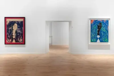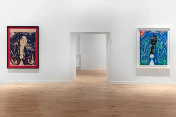 Andy Warhol (1928 – 1987) besøkte i 1973 Oslo for å se kunst av Edvard Munch (1863-1944). I 1982 åpnet en stor utstilling med over hundre verk av Munch på det midlertidige Galleri Bellman i New York. Warhol besøkte utstillingen flere ganger og utførte deretter en serie silketrykk basert på noen av Munchs mest ikoniske motiver: Madonna, Selvportrett med knokkelarm, Skrik og Brosjen.