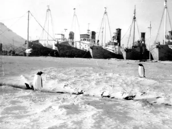Hvalfangststasjonen Husvik Harbour. Foto: Hvalfangstmuseets fotosamling.