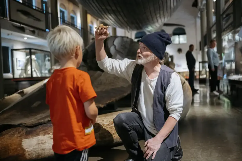 Det blir rebus i museets utstillinger, verksted og fortellerstund for barna. Vi utforsker Knølhvalen og dens migrasjon mellom de nordligste, kalde havområdene til de tropiske hav.