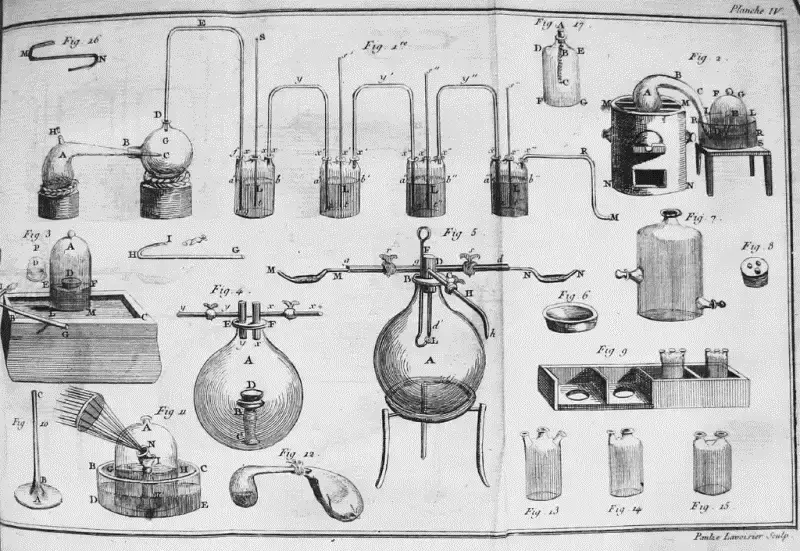 Plansje fra Lavoisiers avhandling "Traité élémentaire de chimie".