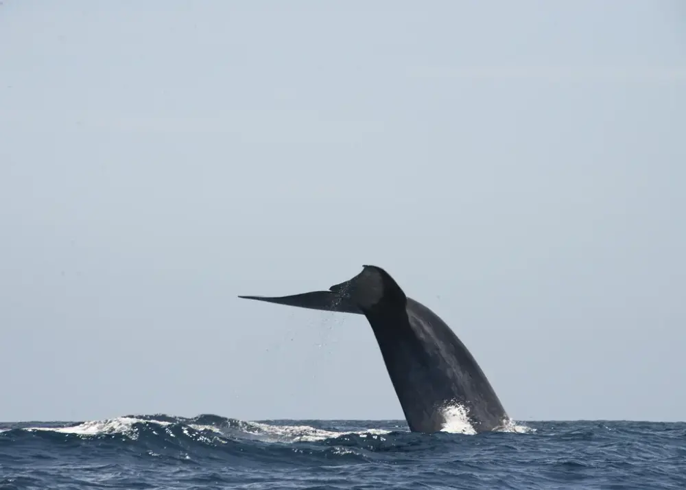 Dykkende blåhval ved Asorene. Foto: Andreas Tjernshaugen.