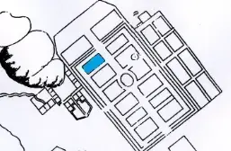 Den gjenoppdagede dammen er markert med blått på 1688-kartet over Herregården med hage.