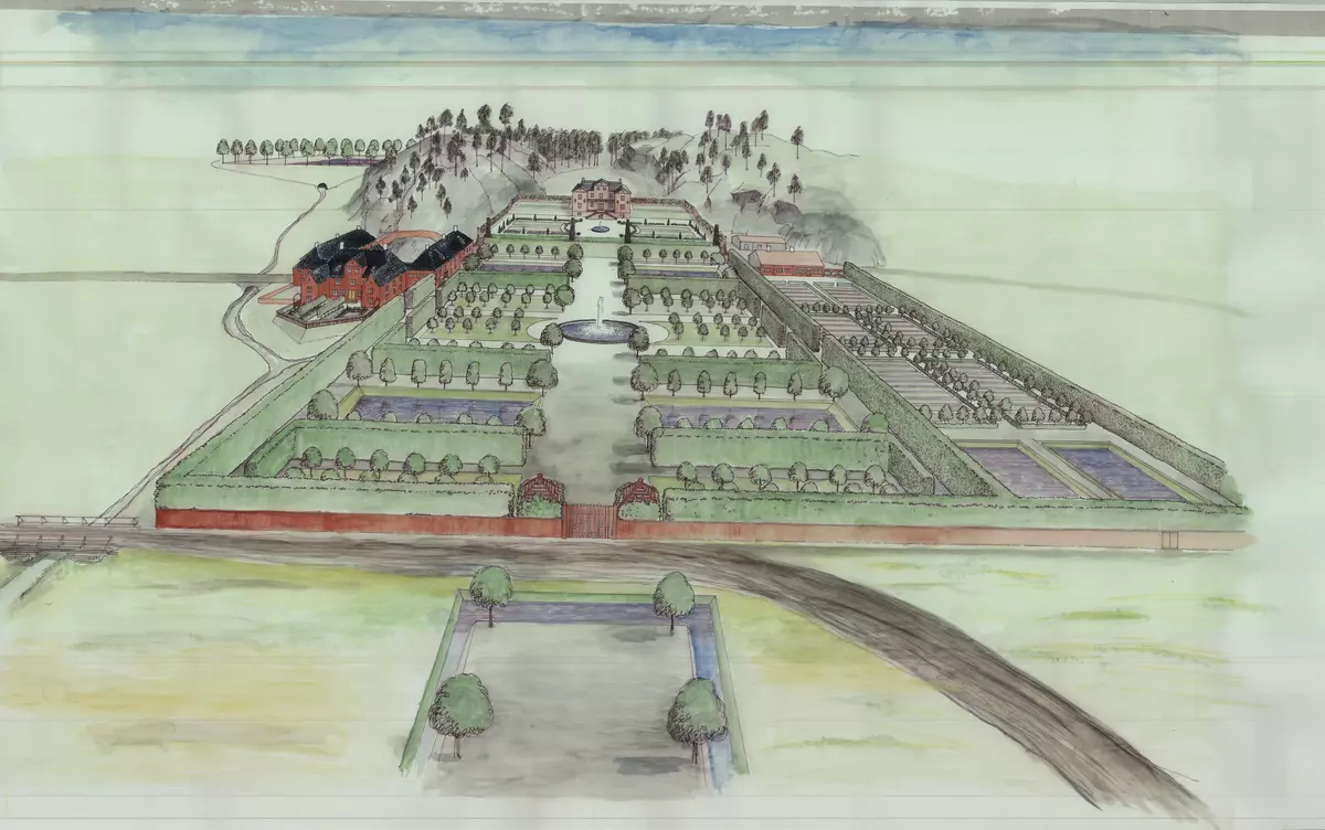 - Det fantes også mange frukttrær. Helt i øst lå kjøkkenhagen, som var gartnerens egen hage