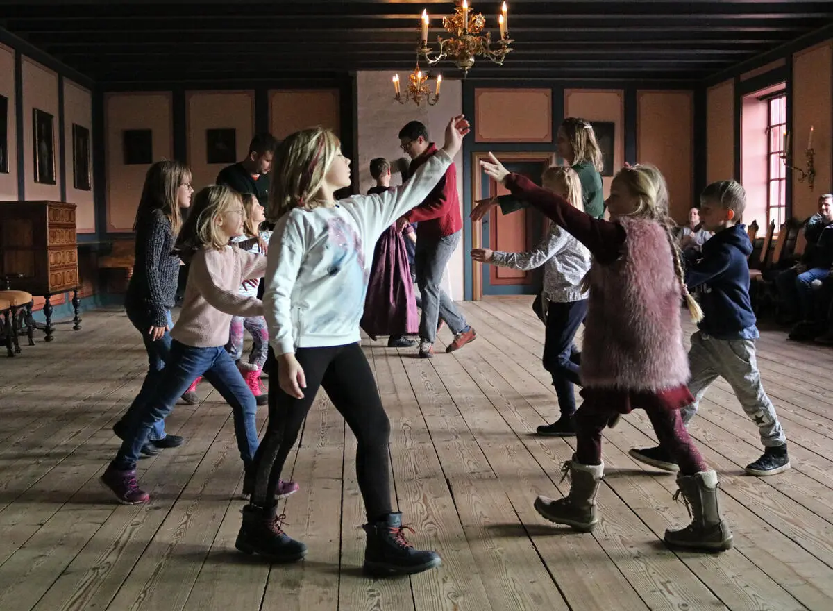 Kl. 14.00: Elise Kaupang fra Larvik Kulturskole tar oss med på lek og sang fra rom til rom gjennom Herregården