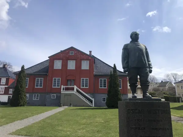 Polfareren Oscar Wisting foran Sjøfartsmuseet i Larvik.