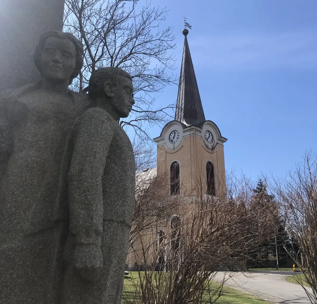 Larvik kirke og krigsminnesmerket.