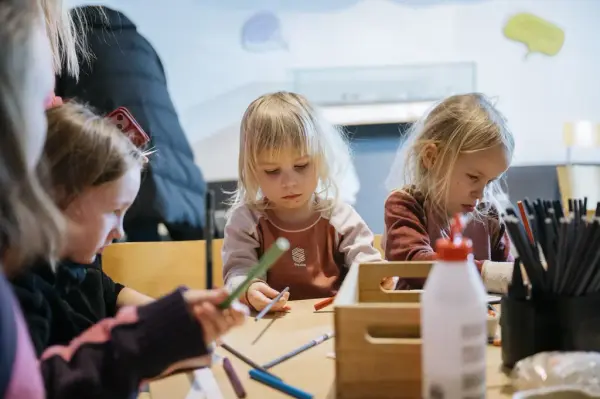 Vi samler oss i konferansesalen på Midgard vikingsenter til en hyggelig kveld med kreativitet og varm kakao.
