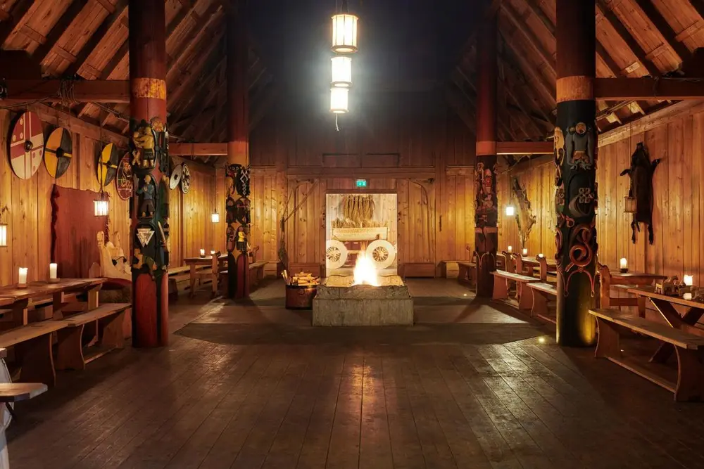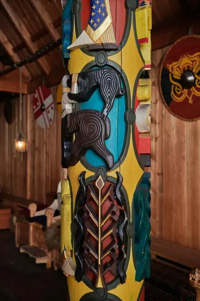 De store søylene dominerte hallrommet. De hadde betydelig større dimensjoner enn i et vanlig bolighus, langhuset. I tillegg til å bære det høye taket gjorde de store søylene det mulig med større avstand mellom stolpeparene. Dette bidro til å skape et stort åpent rom inne i bygningen.