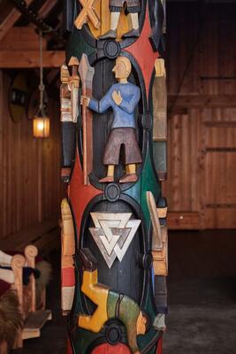 For mer informasjon om historiene på søylene i hallen, klikk her.