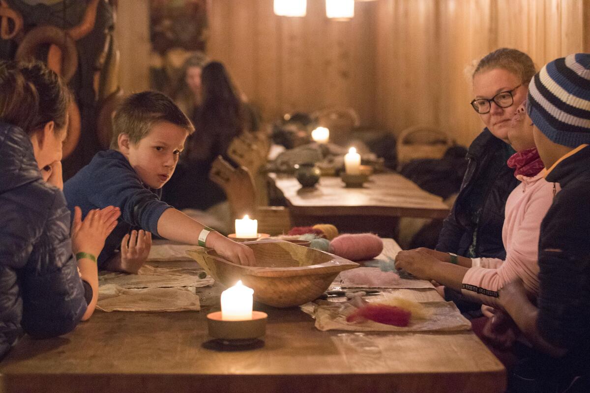 12.00 - 15.00: Vi lager kongledyr, spinner snurrebasser og lærer å filte inne i konferansesalen på Midgard.
