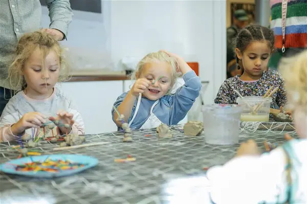 I tillegg kan barn og unge være med på kunst-verksted med en av våre dyktige formidlere og kunstnere Ingen påmelding kreves til kunst-verkstedet og det er gratis å delta.