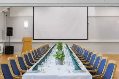 - Kino-oppsett, maks. 110 pers. Oppsettet har rader med stoler, uten bord