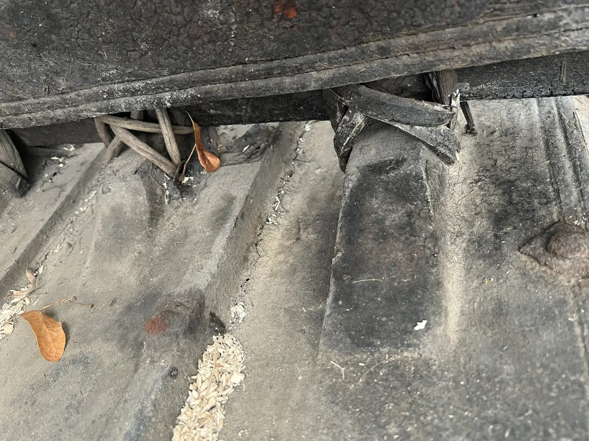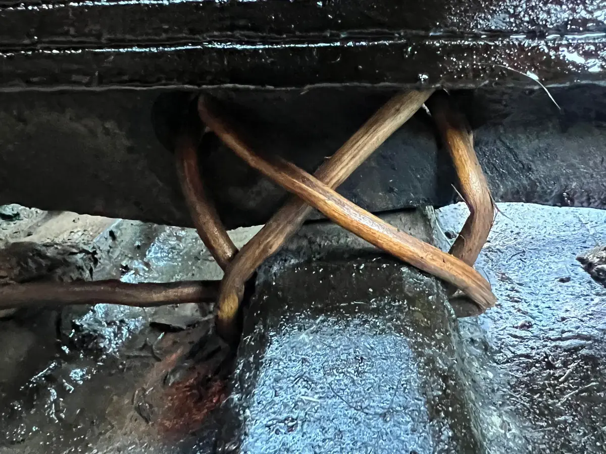 Surring med røtter av gran som fester bordgangene til spantet. Foto: Tore Forsberg. - 3/3