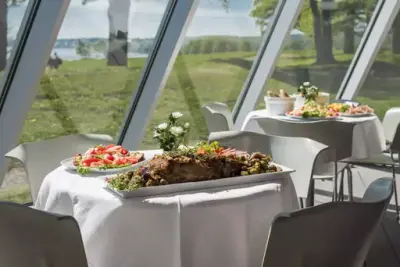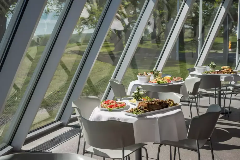Kaféen på Midgard vikingsenter har en nydelig utsikt over Borreparken, og egner seg for ulike mindre selskaper og sammenkomster.