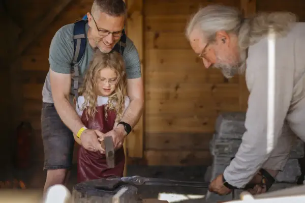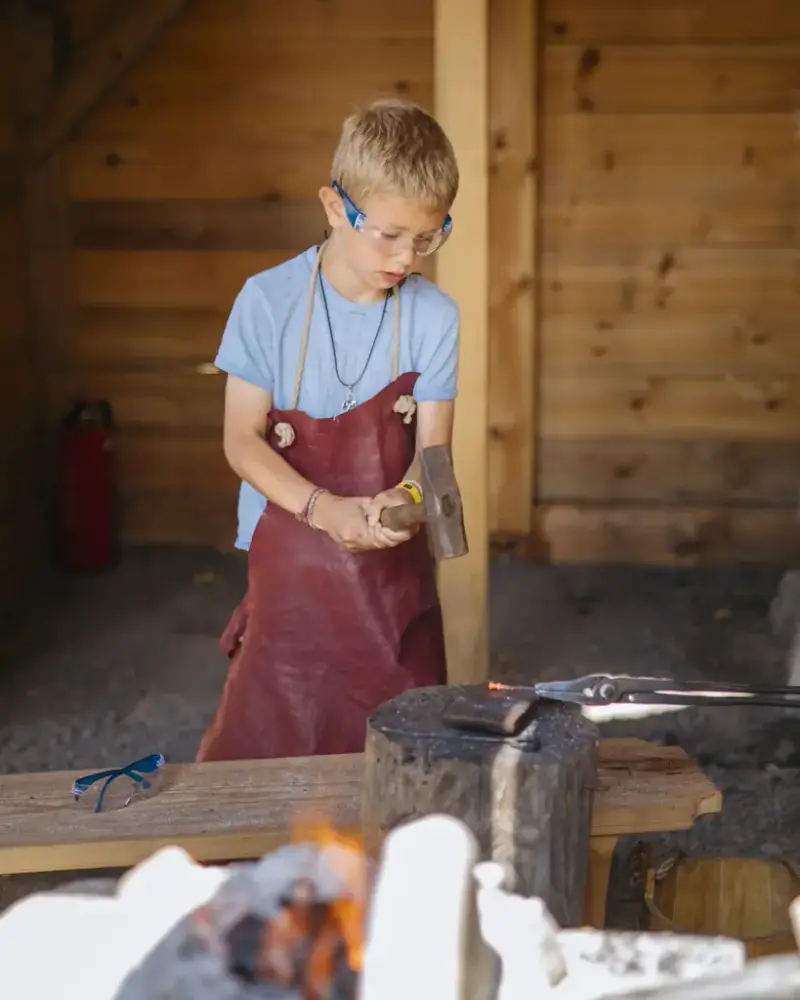 Vi finner fram hammer og kull, fyrer opp essa og smir et lite sverd, et bittelite sverd.