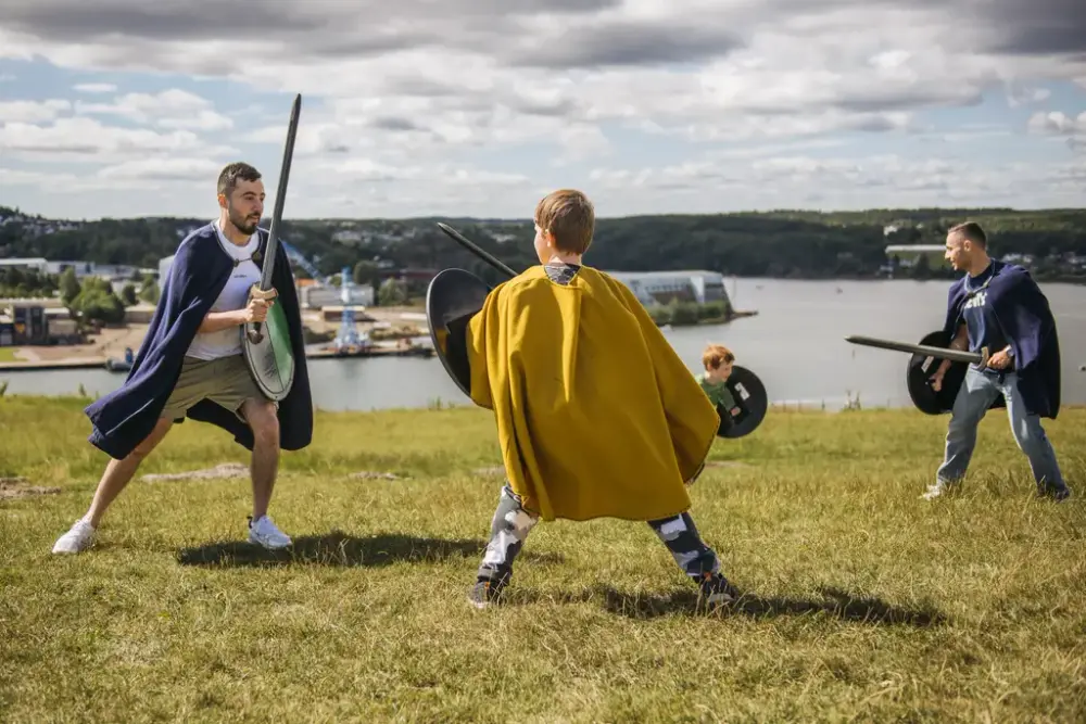 Vi finner fram buer, sverd og skjold og leker oss på Tallak.