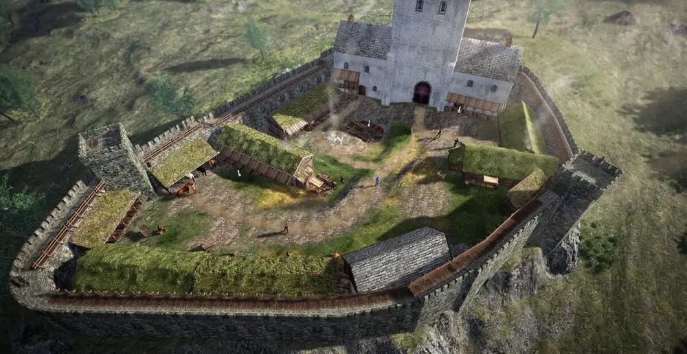 Borgens grunnplan var ca. 260 kvadratmeter, og den har bestått av et steinhus eller tårn med rundt tre etasjer.