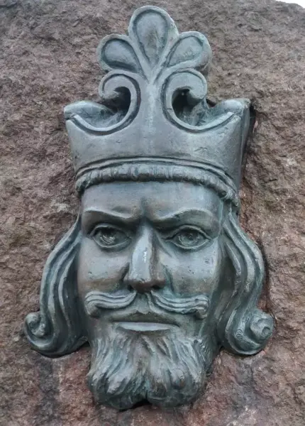 Relieff av kongen på kongens teglkastell på Slottsfjellet.