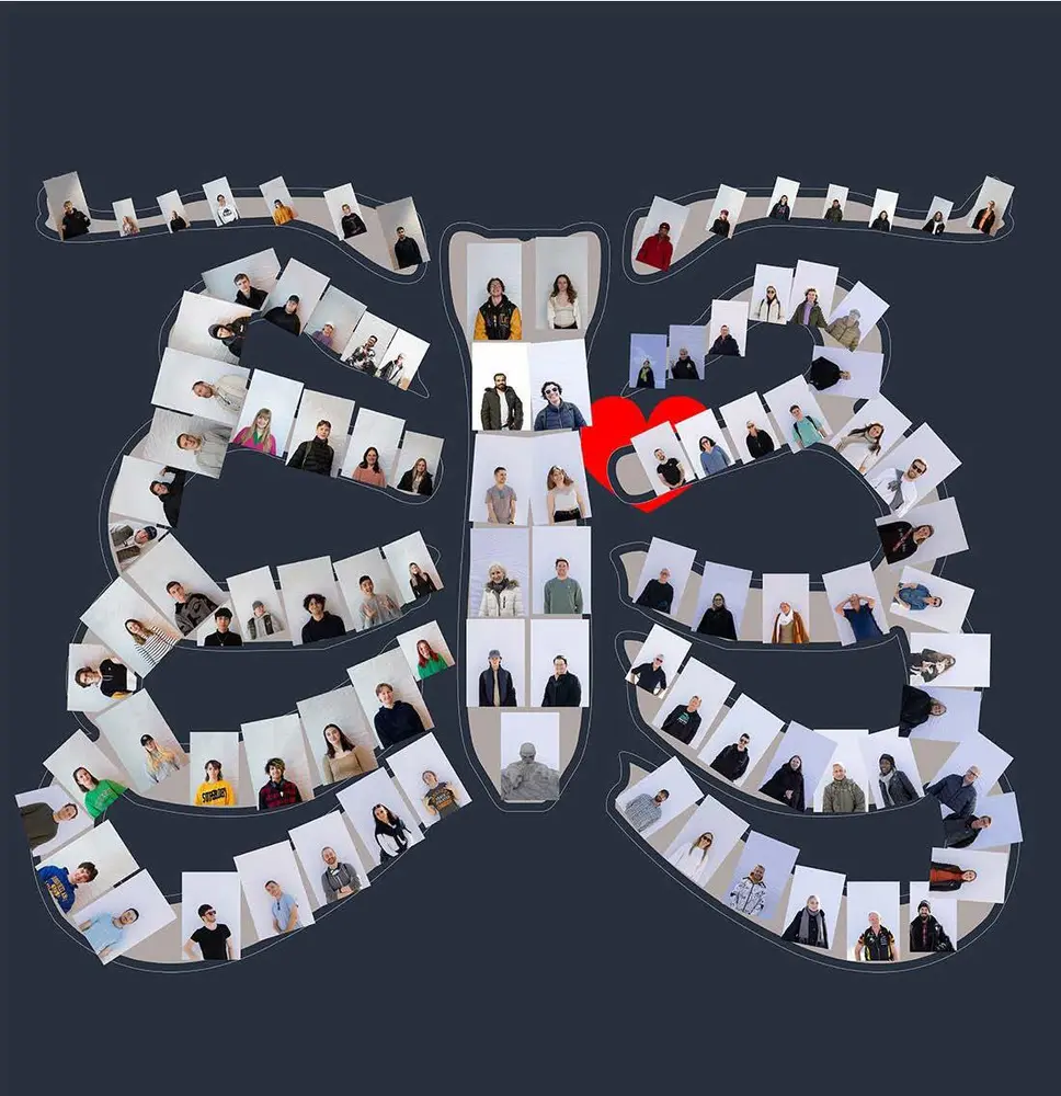 We wanted to get the message across by setting the models up against a white, neutral background and putting their portraits together to make a collage in the form of a human skeleton and a heart.