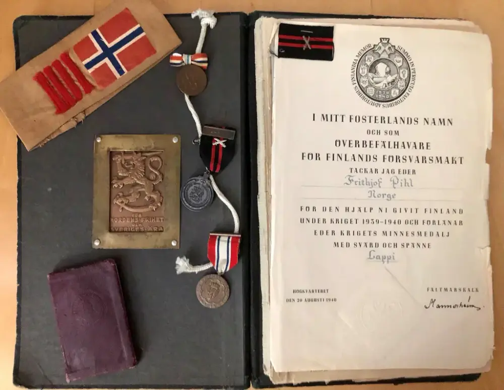Fra arkivet etter Frithjof Pihl (A-2736 - Vestfoldarkivet): Frithjof Pihl deltok i Vinterkrigen i Finland 1939/1940 og motstandsbevegelsen i Vestfold under andre verdenskrig. Arkivet inneholder hans dagbøker, notater og memoarer, fotografier og enkelte gjenstnader knyttet til hans krigsinnsats. (Foto: Vestfoldarkivet)