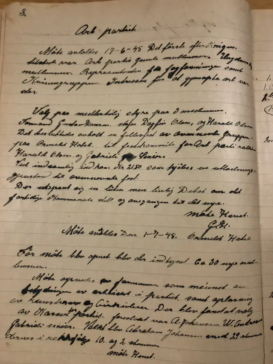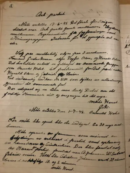 Første møte i Tjøme arbeiderparti etter andre verdenskrig.