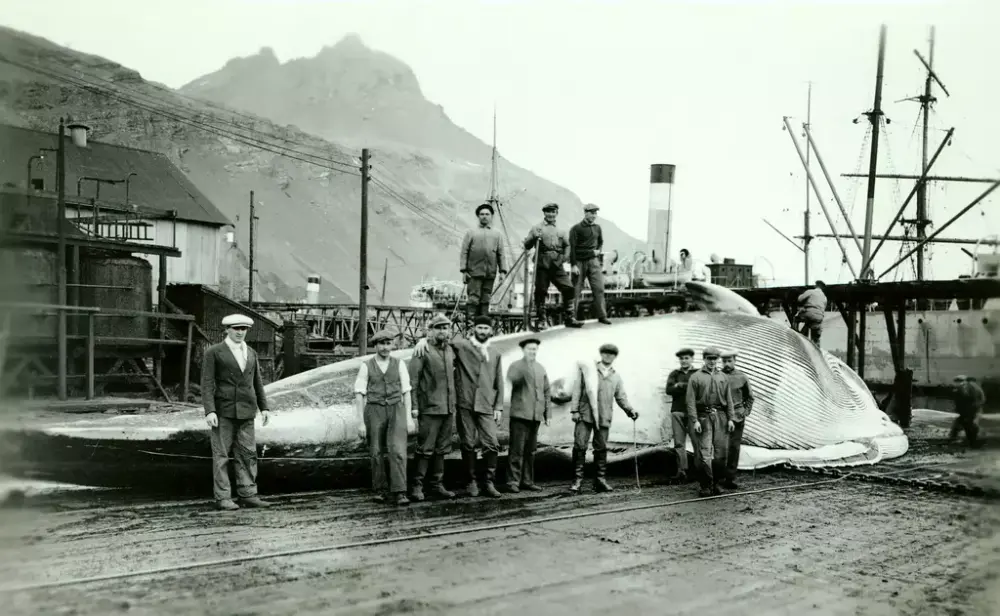 Hvalfangstarkiver1/1Fra flenseplan i Grytviken, Syd-Georgia. Foto: Theodor Andersson. Åpne eller lukk bildetekst Sven Foyns dagbok AS Hektors fangstlisens Pastor Løkens brev Theodor Anderssons fotosamling DS Norvegias skipsdagbok AS Kosmos styreprotokoll