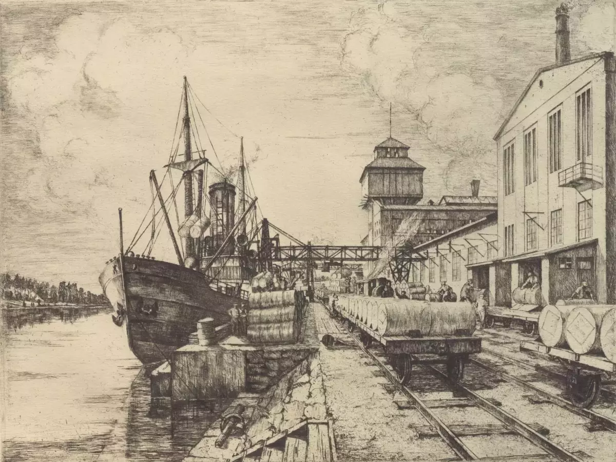 Kunstnerisk tegning av fabrikken fra første halvdel av 1900-tallet (Foto: Vestfoldmuseene IKS)