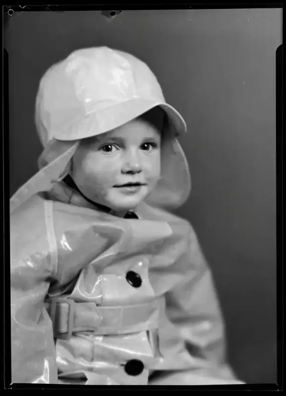 Portrett av barn i regntøy, 1934 Dimitri Koloboff / Vestfoldmuseenes fotosamling - 8/8