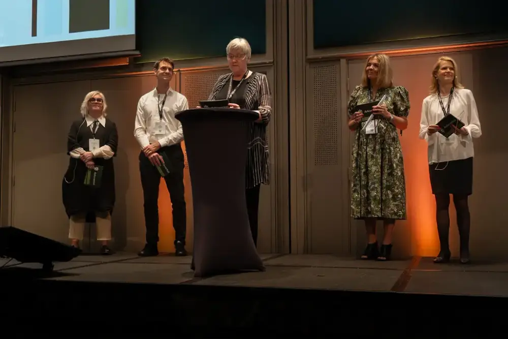 Nordiske riksarkivarer: Karin Åström Iko (Sverige) (f.v.), Morten Ellegaard (Danmark), Hrefna Róbertsdóttir (Island), Inga Bolstad (Norge) og Päivi Happonen (Finland). Arkivverket