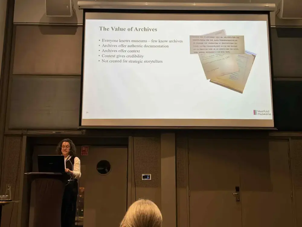 Ann Tove Manshaus og Ulla Nachtstern, som begge arbeider i Vestfoldarkivet, holdt innlegg i sesjonen som løftet frem arkivenes potensial. Manshaus presenterte prosjektet «Mitt Drammen», en fotodokumentasjon og innsamling av personlige fortellinger fra Drammen og byens mangfoldige befolkning. Nachtstern gav innblikk i prosjektet «Unge kritikere» der vi jobber med ungdom for å utvikle og teste metodikk knyttet til kritisk tenkning, dialog og deltagelse i uenighetsfellesskap.