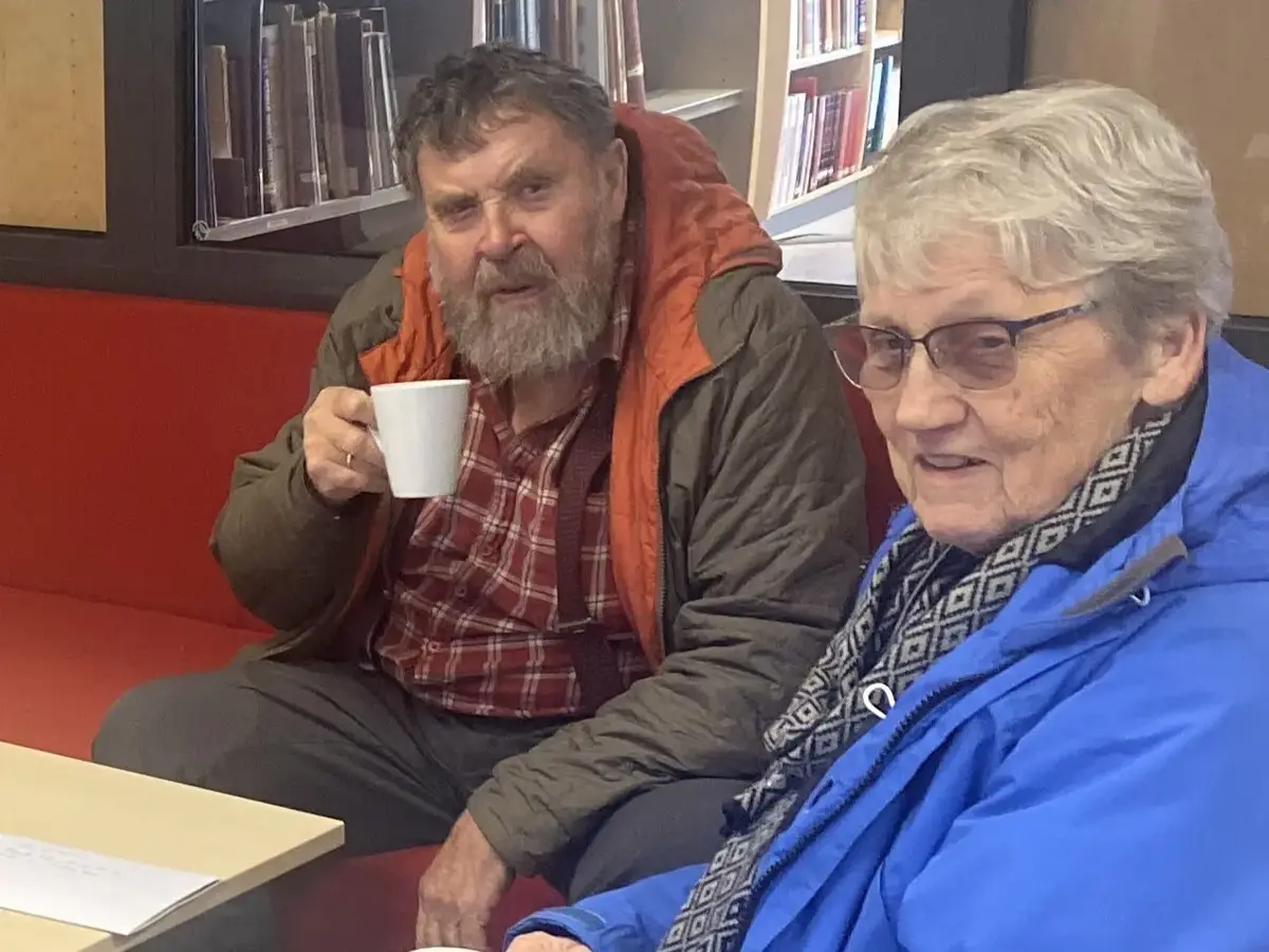 Svein Aakerholt og Grete Berge fra Sandar Spellemannslag hos Vestfoldarkivet. Foto: Ann Tove Manshaus, Vestfoldarkivet