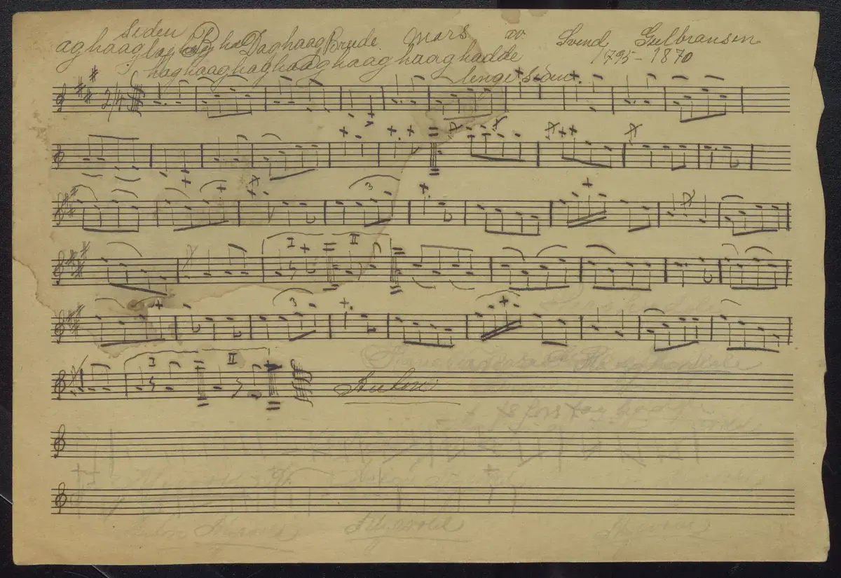 Svend Gulbrandsens brudemarsj, i Anton Svendsen Myrvoll (1895-1986) sin nedtengelse. Foto hentet fra Digitalarkivet