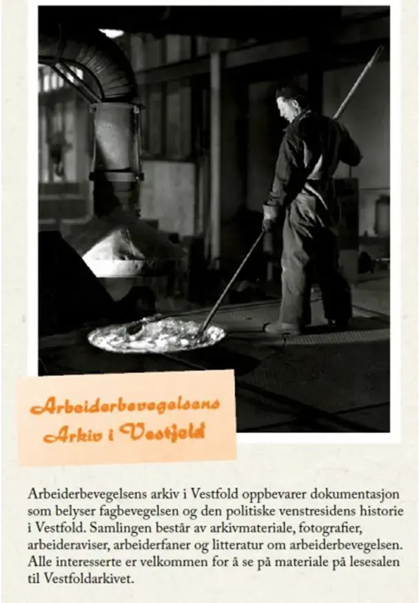 Innlegget var en presentasjon av Arbeiderbevegelsens arkiv i Vestfold, som har en historie helt tilbake til 1959, og var det første regionale Arbeiderbevegelsens arkiv.