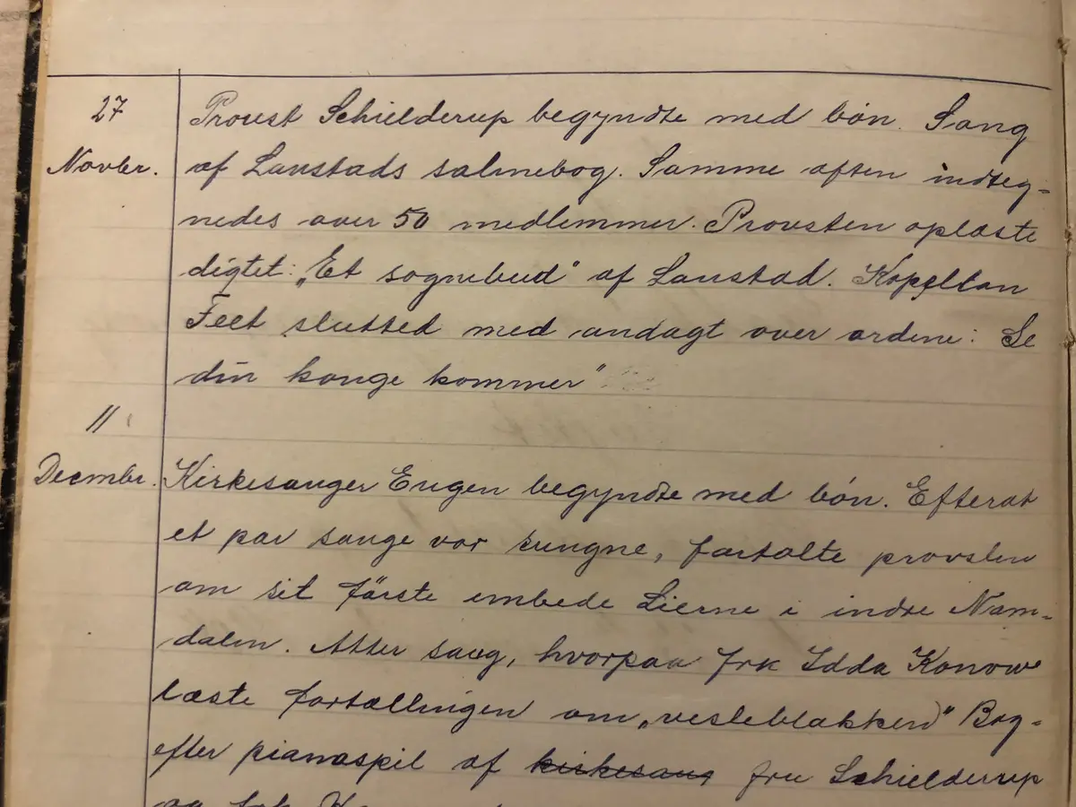 I den første tiden hadde foreningen møter regelmessig hver 14. dag i prestegården. På møtene kunne det være foredrag, taler, opplesning, sang og pianospill. Historiefortelling var også populært. I de tidlige referatene kan vi lese at frøken Ida Konow fra Melsom leste fortellingen om «Vesleblakken» på et møte, Carsten Anker på Vårnes fortalte om Danmark, lærer Engen om Hans Nilsen Hauge og lærer Hans Sørensen fra Melsomvik om trekkfuglene. På møtene kunne det være enkel servering. Det hendte til og med at prestefruen serverte eggedosis. Videre ble det arrangert medlemsturer fra et tidlig tidspunkt. Tredje pinsedag i 1905 ble det arrangert en tur, men referatet sier ikke hvor hen. Derimot sies det at det ble samlet inn kr 50 til en fattig og syk pike.